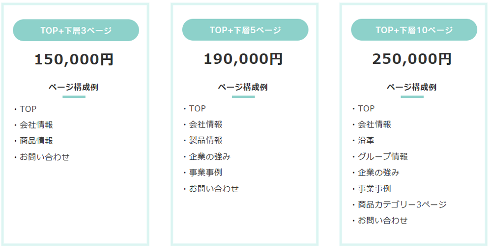 ・デザインテンプレートから選択して作るので、最短1週間でできる!・テンプレートをもとに作成できるので、費用は15万円程度で作成可能!